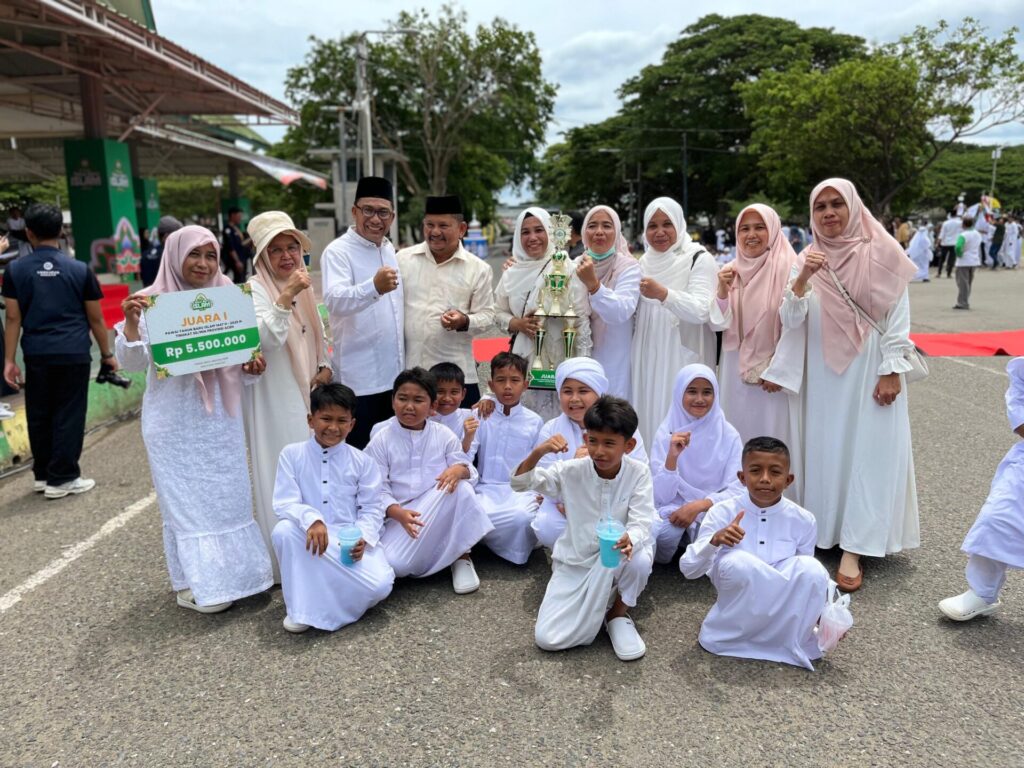 MIN 6 Banda Aceh tampil menonjol dengan barisan rapi, kostum seragam yang penuh nuansa syar’i, serta penampilan yel-yel semangat belajar yang selaras dengan tema. Tidak hanya itu, penampilan kreatif yang dikemas dalam balutan budaya Aceh menjadi daya tarik tersendiri, sekaligus memperkuat pesan moral dan nilai-nilai keislaman yang dibawa.